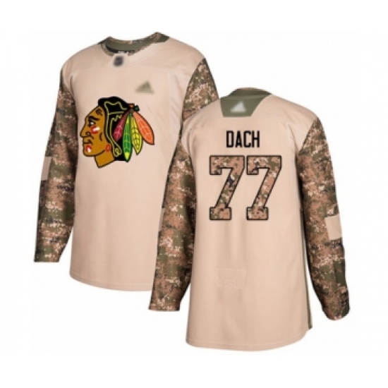 >Men's Chicago Blackhawks #77 Kirby Dach Authentic Camo Veterans Day Practice Hockey Jersey