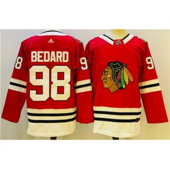 Men's Chicago Blackhawks #98 Connor Bedard Red Black Stitched Jersey