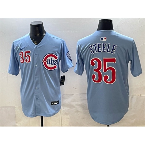 >Men's Chicago Cubs #35 Justin Steele Blue 2024 25 2nd Alternate Limited Stitched Baseball Jersey