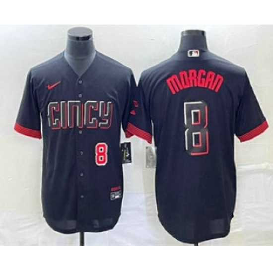Men's Cincinnati Reds #8 Joe Morgan Number Black 2023 City Connect Cool Base Stitched Jersey 1