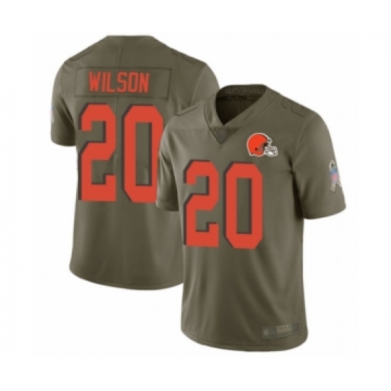 >Men's Cleveland Browns #20 Howard Wilson Limited Olive Camo 2017 Salute to Service Football Jersey