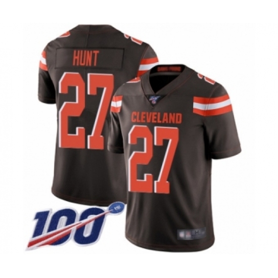 >Men's Cleveland Browns #27 Kareem Hunt Brown Team Color Vapor Untouchable Limited Player 100th Season Football Jersey