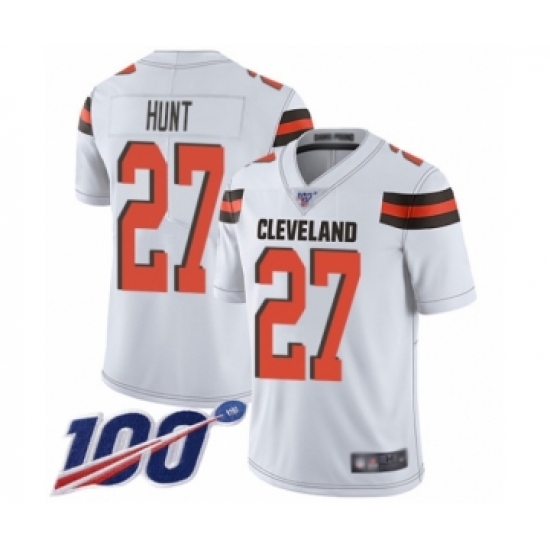 Men's Cleveland Browns #27 Kareem Hunt White Vapor Untouchable Limited Player 100th Season Football Jersey