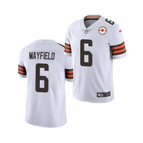 >Men's Cleveland Browns #6 Baker Mayfield 2021 White 75th Anniversary Patch Vapor Untouchable Limited Jersey
