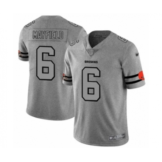 Men's Cleveland Browns #6 Baker Mayfield Limited Gray Team Logo Gridiron Football Jersey
