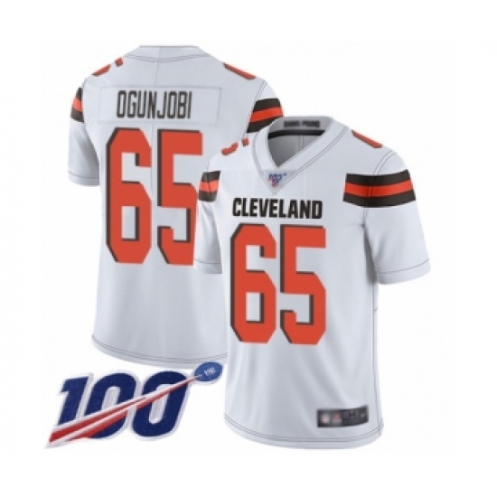 Men's Cleveland Browns #65 Larry Ogunjobi White Vapor Untouchable Limited Player 100th Season Football Jersey