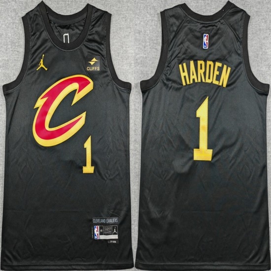 Men's Cleveland Cavaliers #1 James Harden Black 2026 Statement Edition Stitched Jersey