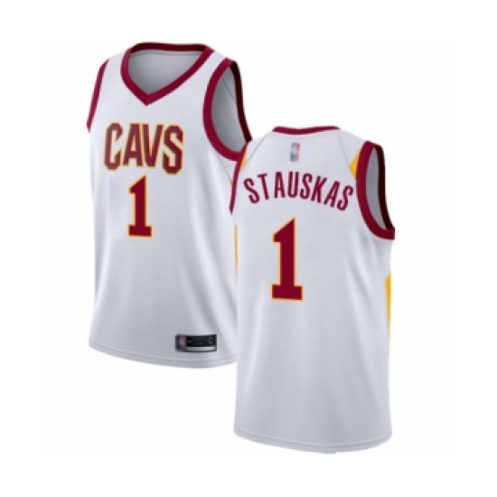 Men's Cleveland Cavaliers #1 Nik Stauskas Authentic White Basketball Jersey - Association Edition