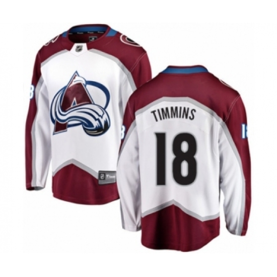 >Men's Colorado Avalanche #18 Conor Timmins Authentic White Away Fanatics Branded Breakaway NHL Jersey