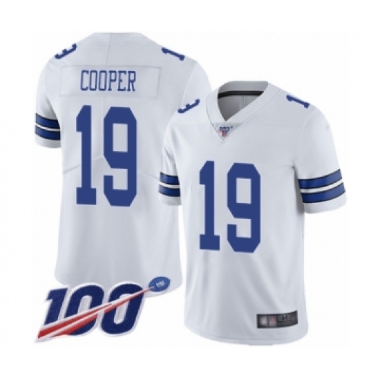 >Men's Dallas Cowboys #19 Amari Cooper White Vapor Untouchable Limited Player 100th Season Football Jersey