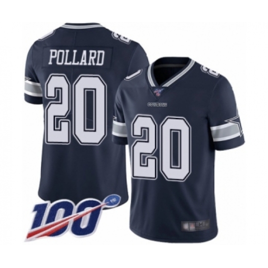 >Men's Dallas Cowboys #20 Tony Pollard Navy Blue Team Color Vapor Untouchable Limited Player 100th Season Football Jersey