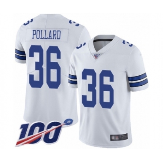 Men's Dallas Cowboys #36 Tony Pollard White Vapor Untouchable Limited Player 100th Season Football Jersey