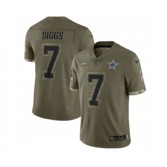 >Men's Dallas Cowboys #7 Trevon Diggs 2022 Olive Salute To Service Limited Stitched Jersey
