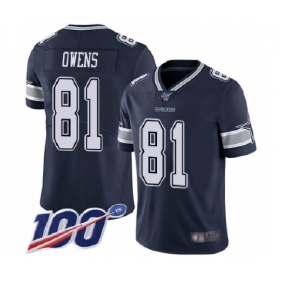 >Men's Dallas Cowboys #81 Terrell Owens Navy Blue Team Color Vapor Untouchable Limited Player 100th Season Football Jersey
