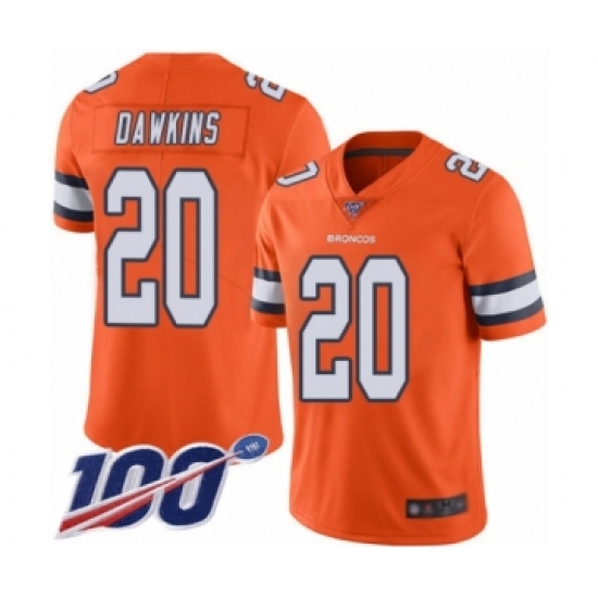 Men's Denver Broncos #20 Brian Dawkins Limited Orange Rush Vapor Untouchable 100th Season Football Jersey