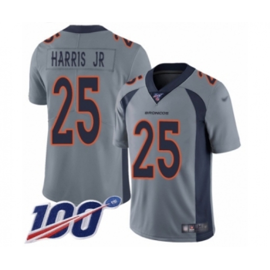 Men's Denver Broncos #25 Chris Harris Jr Limited Silver Inverted Legend 100th Season Football Jersey