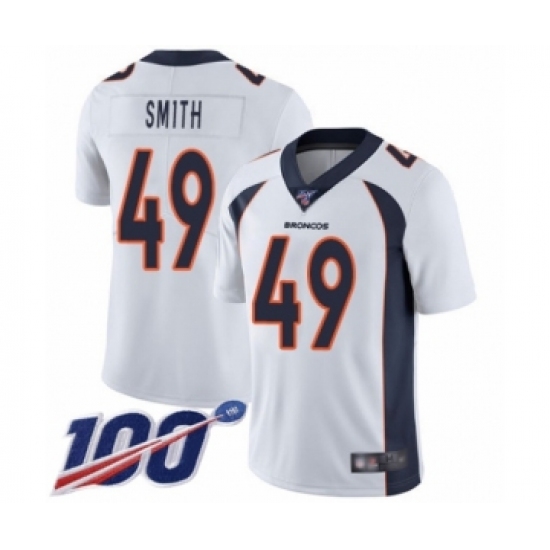 Men's Denver Broncos #49 Dennis Smith White Vapor Untouchable Limited Player 100th Season Football Jersey
