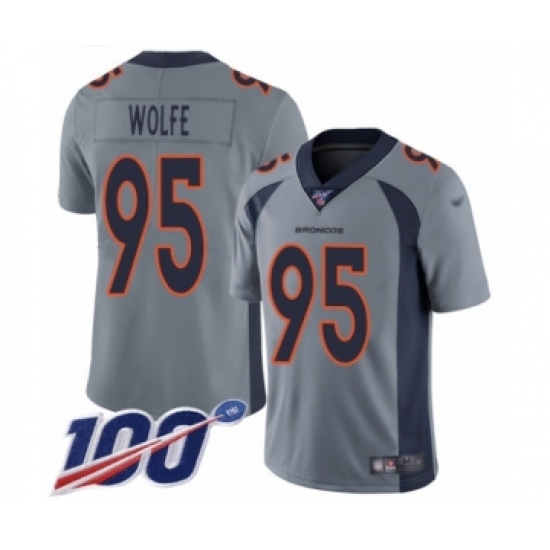 >Men's Denver Broncos #95 Derek Wolfe Limited Silver Inverted Legend 100th Season Football Jersey