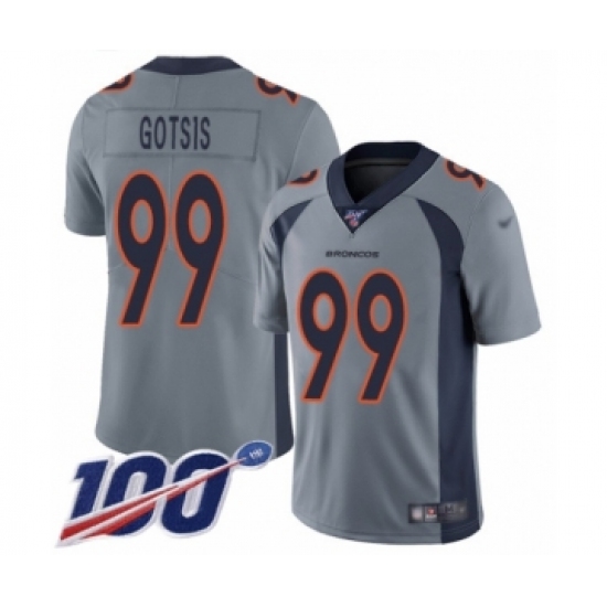 Men's Denver Broncos #99 Adam Gotsis Limited Silver Inverted Legend 100th Season Football Jersey