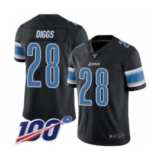 >Men's Detroit Lions #28 Quandre Diggs Limited Black Rush Vapor Untouchable 100th Season Football Jersey