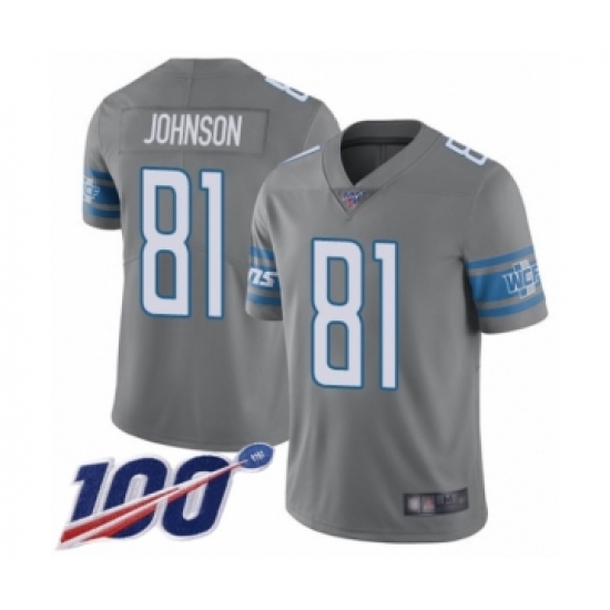 >Men's Detroit Lions #81 Calvin Johnson Limited Steel Rush Vapor Untouchable 100th Season Football Jersey