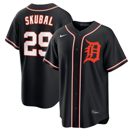 Men's Detroit Tigers #29 Tarik Skubal Black Out Stitched Baseball Jersey