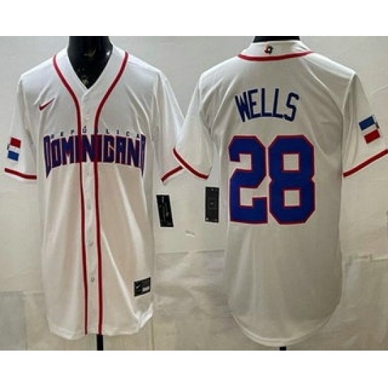 >Men's Dominican #28 Austin Wells White 2026 World Baseball Classic Cool Base Jersey
