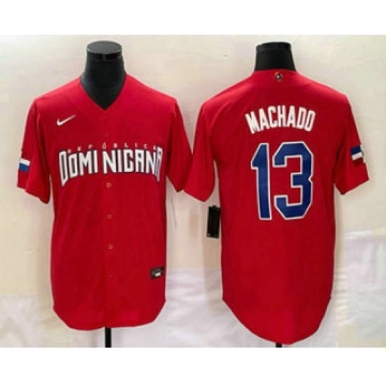 >Men's Dominican Republic Baseball #13 Manny Machado 2023 Red World Classic Stitched Jerseys