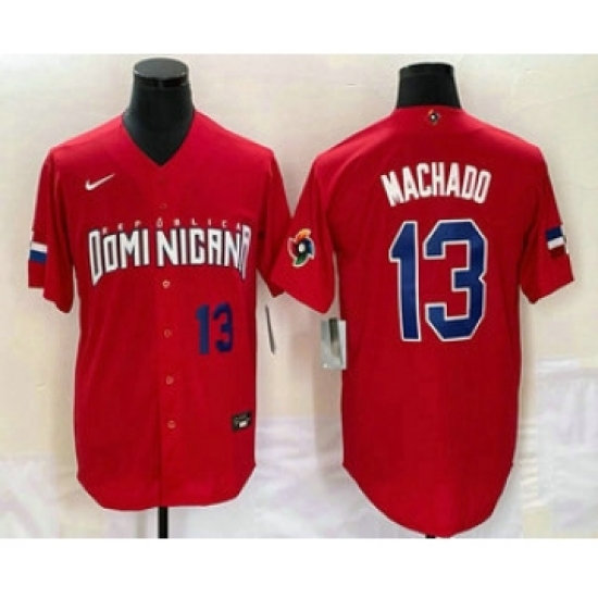 Men's Dominican Republic Baseball #13 Manny Machado Number 2023 Red World Classic Stitched Jerseys