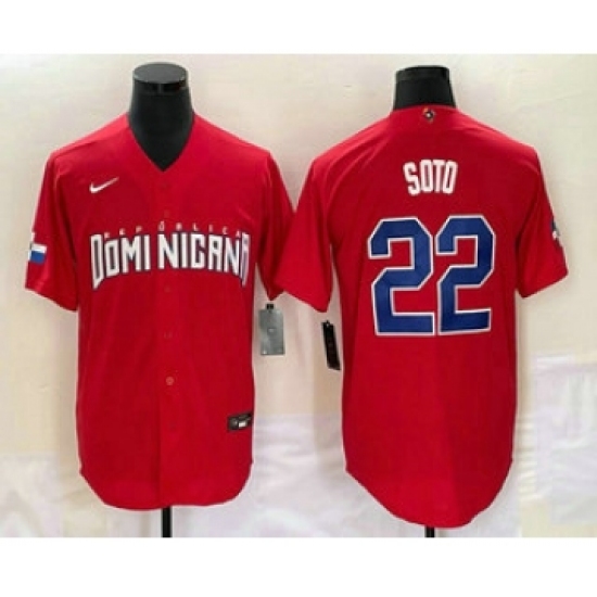 Men's Dominican Republic Baseball #22 Juan Soto Number 2023 Red World Classic Stitched Jersey
