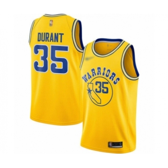 Men's Golden State Warriors #35 Kevin Durant Authentic Gold Hardwood Classics Basketball Jersey