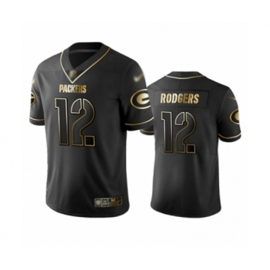 Men's Green Bay Packers #12 Aaron Rodgers Limited Black Golden Edition Limited Football Jerse