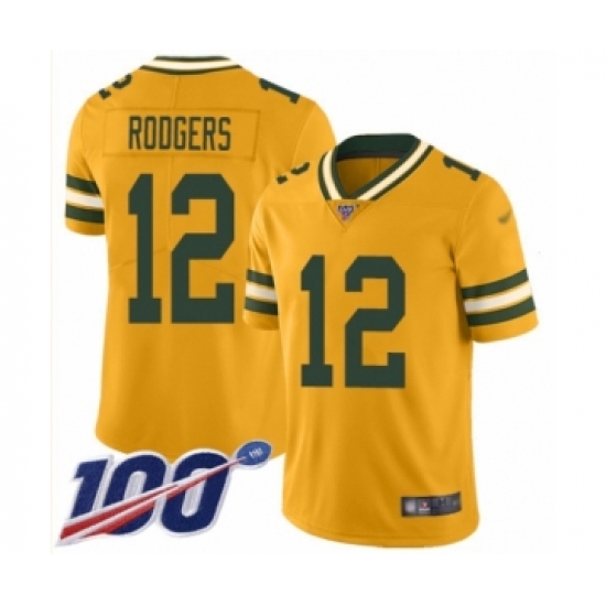 >Men's Green Bay Packers #12 Aaron Rodgers Limited Gold Inverted Legend 100th Season Football Jersey