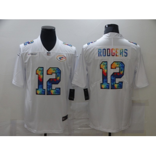 Men's Green Bay Packers #12 Aaron Rodgers White Rainbow Version Nike Limited Jersey