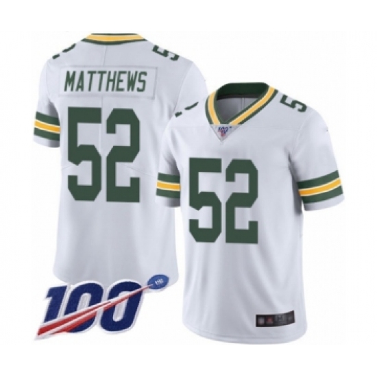 Men's Green Bay Packers #52 Clay Matthews White Vapor Untouchable Limited Player 100th Season Football Jersey