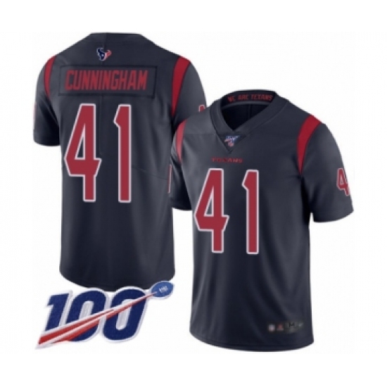 >Men's Houston Texans #41 Zach Cunningham Limited Navy Blue Rush Vapor Untouchable 100th Season Football Jersey