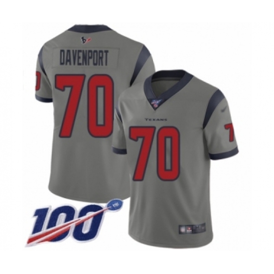 >Men's Houston Texans #70 Julien Davenport Limited Gray Inverted Legend 100th Season Football Jersey