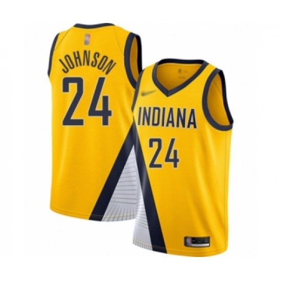 >Men's Indiana Pacers #24 Alize Johnson Authentic Gold Finished Basketball Jersey - Statement Edition