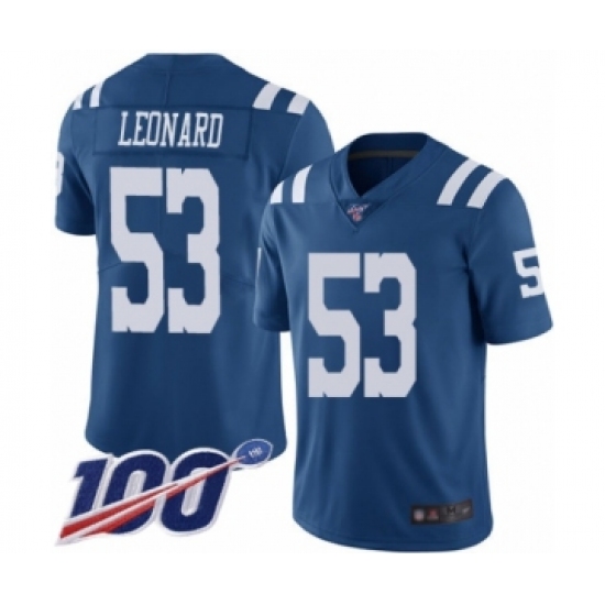 Men's Indianapolis Colts #53 Darius Leonard Limited Royal Blue Rush Vapor Untouchable 100th Season Football Jersey
