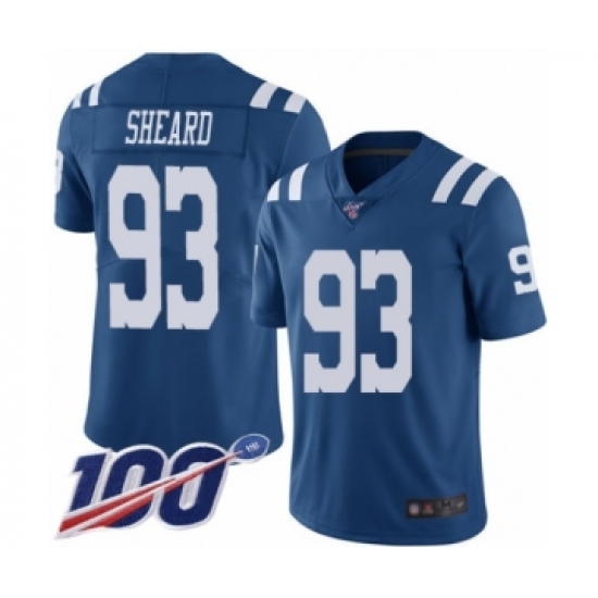 >Men's Indianapolis Colts #93 Jabaal Sheard Limited Royal Blue Rush Vapor Untouchable 100th Season Football Jersey