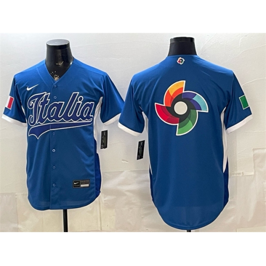 Men's Italy Baseball Blue 2026 World Baseball Classic Big Logo Home Stadium Stitched Jersey