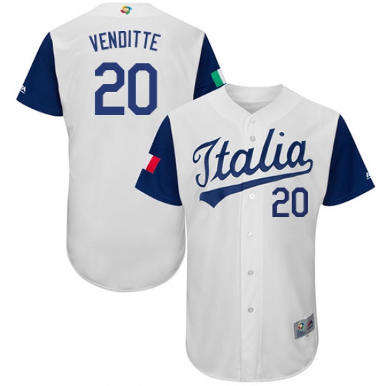 Men's Italy Baseball Majestic #20 Pat Venditte White 2017 World Baseball Classic Authentic Team Jersey