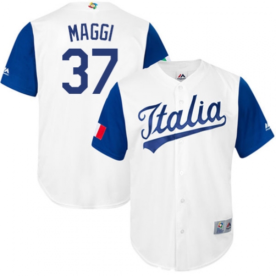 Men's Italy Baseball Majestic #37 Drew Maggi White 2017 World Baseball Classic Replica Team Jersey