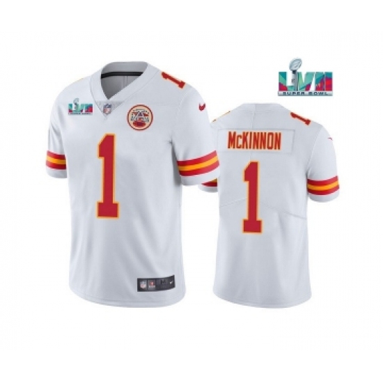 >Men's Kansas City Chiefs #1 Jerick McKinnon White Super Bowl LVII Patch Vapor Untouchable Limited Stitched Jersey