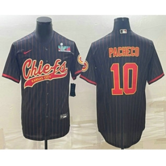 Men's Kansas City Chiefs #10 Isiah Pacheco Black Pinstripe With Super Bowl LVII Patch Cool Base Stitched Baseball Jersey