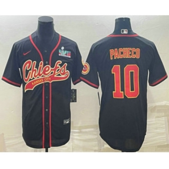 Men's Kansas City Chiefs #10 Isiah Pacheco Black With Super Bowl LVII Patch Cool Base Stitched Baseball Jersey