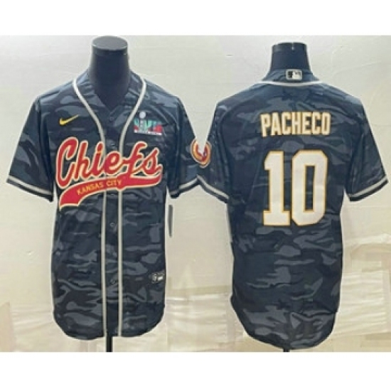 Men's Kansas City Chiefs #10 Isiah Pacheco Grey Camo With Super Bowl LVII Patch Cool Base Stitched Baseball Jersey