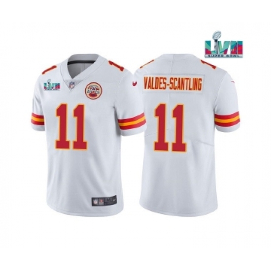 >Men's Kansas City Chiefs #11 Marquez Valdes-Scantling White Super Bowl LVII Patch Vapor Untouchable Limited Stitched Jersey