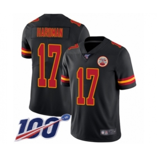 Men's Kansas City Chiefs #17 Mecole Hardman Limited Black Rush Vapor Untouchable 100th Season Football Jersey