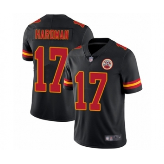 >Men's Kansas City Chiefs #17 Mecole Hardman Limited Black Rush Vapor Untouchable Football Jersey
